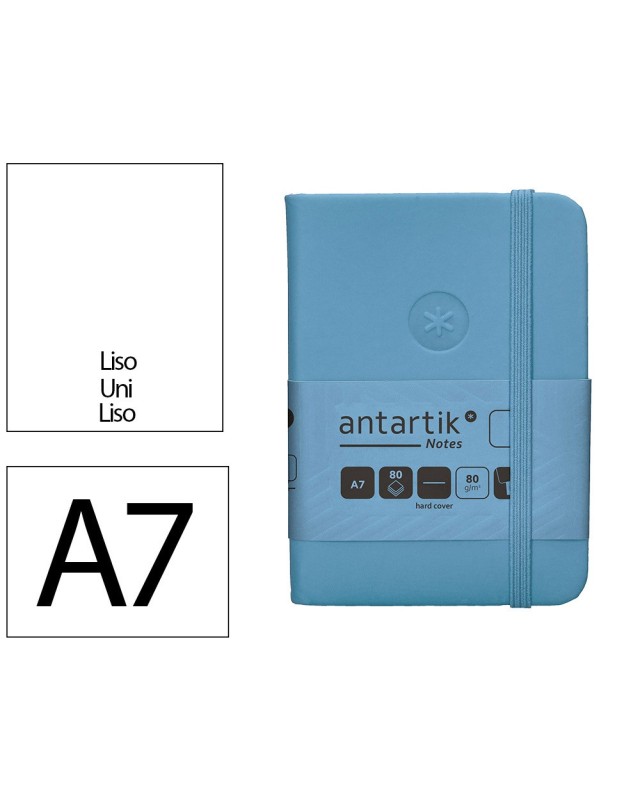 Cuaderno con gomilla antartik notes tapa dura a7 hojas lisas azul claro 80 hojas 80 gr fsc