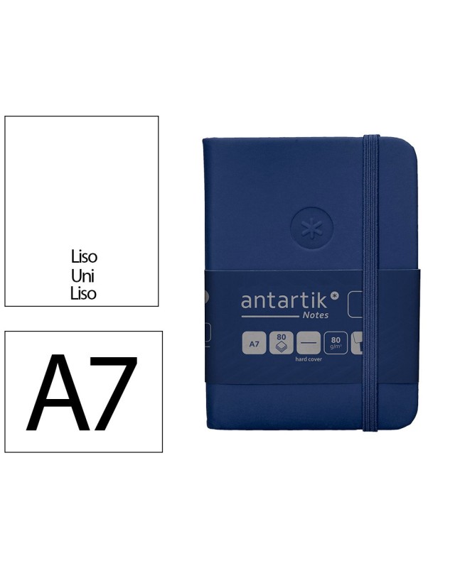 Cuaderno con gomilla antartik notes tapa dura a7 hojas lisas azul marino 80 hojas 80 gr fsc