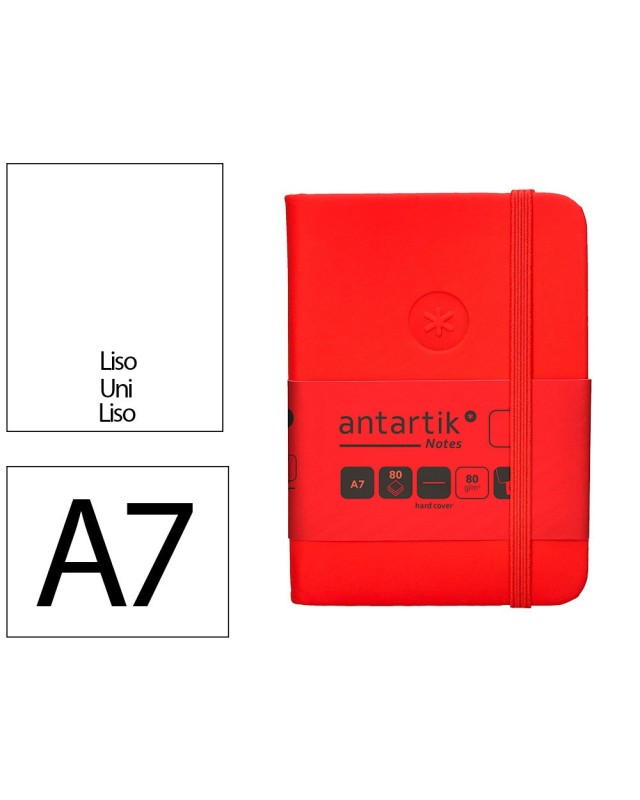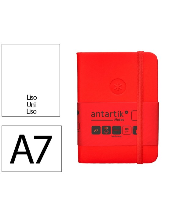 Cuaderno con gomilla antartik notes tapa dura a7 hojas lisas rojo 80 hojas 80 gr fsc