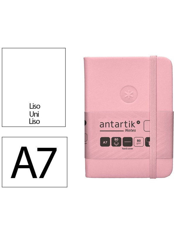 Cuaderno con gomilla antartik notes tapa dura a7 hojas lisas rosa pastel 80 hojas 80 gr fsc