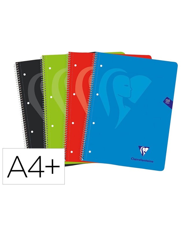Cuaderno espiral clairefontaine tapa forrada din a4+ micro 120h 4 tal 90 gr 5 bandas color cuadro 5 mm