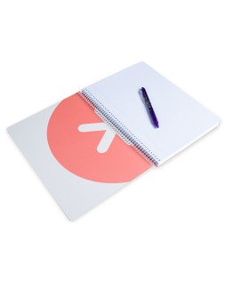 El cuaderno de más alta gama del mercado: exclusivo diseño, características inigualables, un cuaderno sin precedentes que se distingue por la suavidad y blancura de su papel, y además hace la escritura muy fluida. Tapa dura de cartoncillo de 800 g/m² con doble encolado, impresa y plastificada mate extrasuave. Interior de portada impresa y plastificada mate. Gran resistencia y rigidez. Papel extrablanco de 90 g/m², ultrasuave que hace la es critura mucho más fluida. La tinta no traspasa. Espiral nylonizada de colores. Coil-lock.