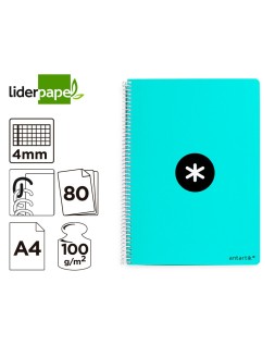 Cuaderno espiral a4 antartik tapa dura 80h 90gr cuadro 4mm con margen color menta