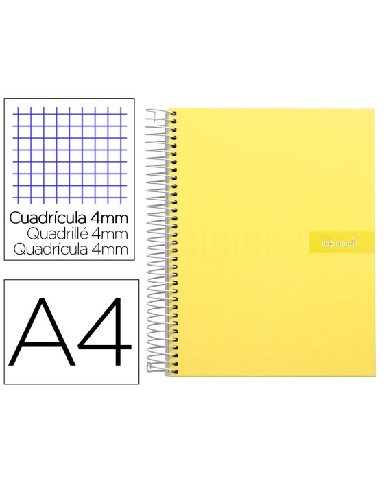 Cuaderno espiral liderpapel a4 crafty tapa forrada 80h 90 gr cuadro 4mm con margen color amarillo