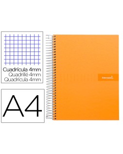 Cuaderno espiral liderpapel a4 crafty tapa forrada 80h 90 gr cuadro 4mm con margen color naranja