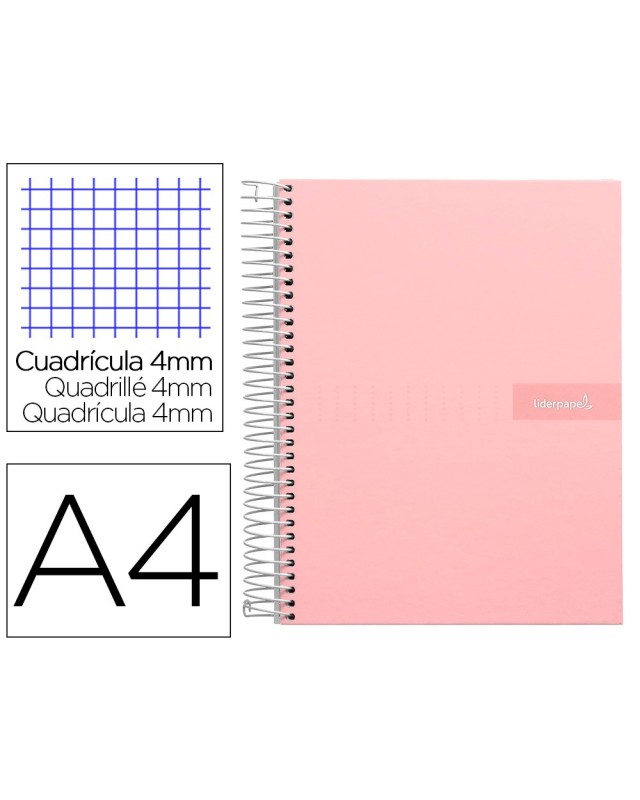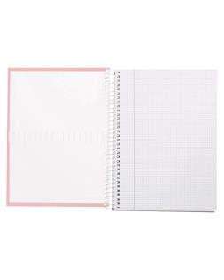 Cuaderno espiral liderpapel a4 crafty tapa forrada 80h 90 gr cuadro 4mm con margen color rosa