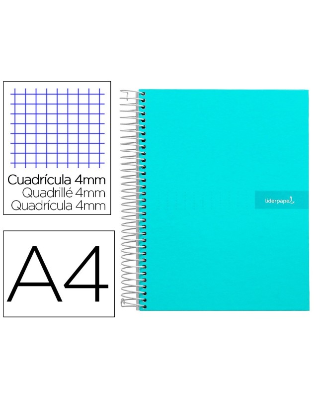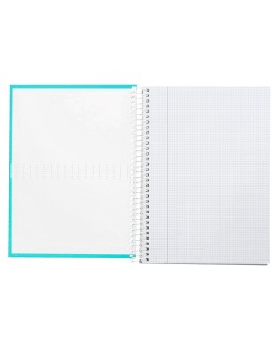 Cuaderno espiral liderpapel a4 crafty tapa forrada 80h 90 gr cuadro 4mm con margen color turquesa