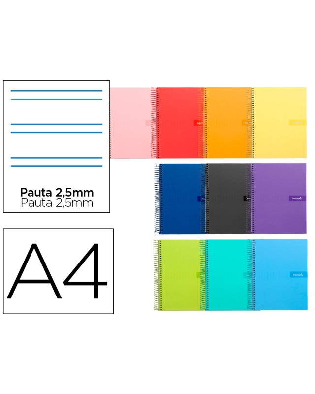 Cuaderno espiral liderpapel a4 crafty tapa forrada 80h 90 gr pauta estrecha 2,5mm con margen colores surtidos