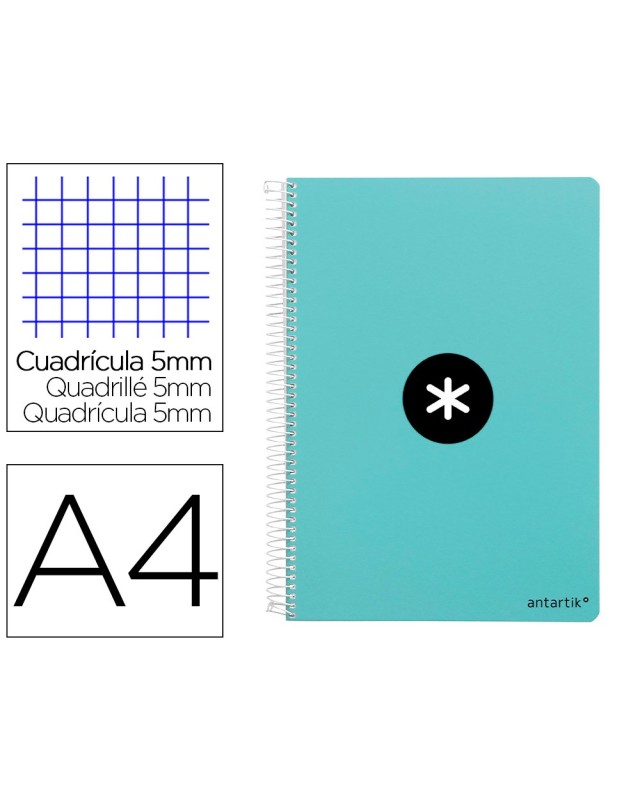 Cuaderno espiral antartik a4 micro tapa dura 80h 100 gr cuadro 5mm sin bandas 4 taladros color menta