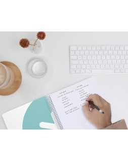 El cuaderno de más alta gama del mercado: exclusivo diseño, características inigualables, un cuaderno sin precedentes que se distingue por la suavidad y blancura de su papel, y además hace la escritura muy fluida. Tapa dura de cartoncillo de 800 g/m² con doble encolado, impresa y plastificada mate extrasuave. Interior de portada impresa y plastificada mate. Gran resistencia y rigidez. Papel extrablanco de 100 g/m², ultrasuave que hace la escritura mucho más fluida. La tinta no traspasa. Espiral nylonizada de colores. Coil-lock.