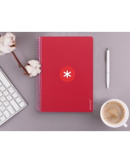 El cuaderno de más alta gama del mercado: exclusivo diseño, características inigualables, un cuaderno sin precedentes que se distingue por la suavidad y blancura de su papel, y además hace la escritura muy fluida. Tapa dura de cartoncillo de 800 g/m² con doble encolado, impresa y plastificada mate extrasuave. Interior de portada impresa y plastificada mate. Gran resistencia y rigidez. Papel extrablanco de 100 g/m², ultrasuave que hace la escritura mucho más fluida. La tinta no traspasa. Espiral nylonizada de colores. Coil-lock.