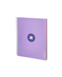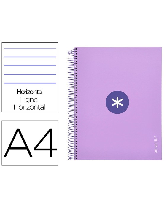 Cuaderno espiral a4 micro antartik tapa forrada 120h 90 gr horizontal 5 bandas 4 taladros color lavanda