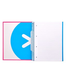 El cuaderno de más alta gama del mercado: exclusivo diseño, características inigualables, un cuaderno sin precedentes que se distingue por la suavidad y blancura de su papel, y además hace la escritura muy fluida. Tapa de cartón entrecolado de 1,5 mm de espesor, forrado a una cara con papel estucado mate extrasuave y reserva de barniz UVI. Guarda interior impresa. 100 y 120 hojas. Gran resistencia y rigidez. Papel extrablanco de 90 g/m², u ltrasuave que hace la escritura mucho más fluida. La tinta no traspasa. 4 bandas de colores (formato A6) y 5 bandas de colores (formatos A5 y A4). Espiral nylonizada de colores. Coil-lock.