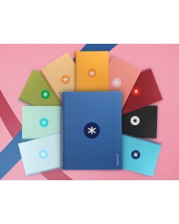 EL CUADERNO DE ALTA GAMA: EXCLUSIVO DISEÑO, CARACTERÍSTICAS INIGUALABLES, UN CUADERNO SIN PRECEDENTES QUE SE DISTINGUE POR LA SUAVIDAD Y BLANCURA DESU PAPEL, Y ADEMÁS HACE LA ESCRITURA MUY FLUIDA. TAPA DE CARTÓN ENTRECOLADO DE 1,5 MM DE ESPESOR, FORRADO A UNA CARA CON PAPEL ESTUCADO MATE EXTRASUAVE Y RESERVA DE BARNIZ UVI. GUARDA INTERIOR IMPRESA. 80 HOJAS,GRAN RESISTENCIA Y RIGIDEZ. PAPEL EXTRABLANCO DE 90 G/M², ULTRASUAVE QUE HACE LA ESCRITURA MUCHO MÁS FLUIDA. LA TINTA NO TRASPASA. AGRADABLE DISEÑOQUE COMBINA LA BANDA DE COLOR CON LA TAPA Y EL ALAMBRE. FORMATO A4. ESPIRAL NYLONIZADA DE COLORES. COIL-LOCK. EXPOSITOR DE 20 UNIDADES, IDEAL PARA LA PRESENTACIÓN EN EL PUNTO DE VENTA.