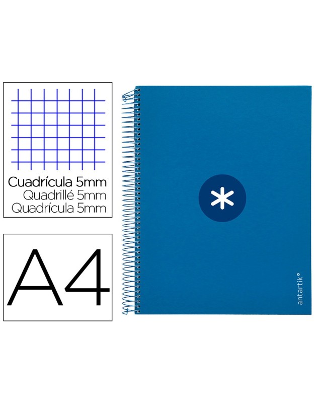 Cuaderno espiral a4 micro antartik tapa forrada 120h 90 gr cuadro 5mm 5 bandas 4 taladros color azul marino