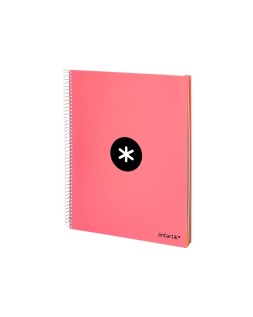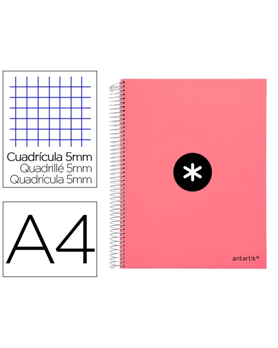 Cuaderno espiral a4 micro antartik tapa forrada 120h 90 gr cuadro 5mm 5 bandas 4 taladros color coral
