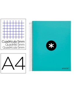 Cuaderno espiral a4 micro antartik tapa forrada 120h 90 gr cuadro 5mm 5 bandas 4 taladros color menta