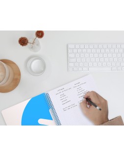 El cuaderno de más alta gama del mercado: exclusivo diseño, características inigualables, un cuaderno sin precedentes que se distingue por la suavidad y blancura de su papel, y además hace la escritura muy fluida. Tapa de cartón entrecolado de 1,5 mm de espesor, forrado a una cara con papel estucado mate extrasuave y reserva de barniz UVI. Guarda interior impresa. 100 y 120 hojas. Gran resistencia y rigidez. Papel extrablanco de 90 g/m², u ltrasuave que hace la escritura mucho más fluida. La tinta no traspasa. 4 bandas de colores (formato A6) y 5 bandas de colores (formatos A5 y A4). Espiral nylonizada de colores. Coil-lock.