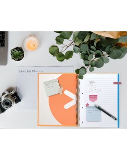 El cuaderno de más alta gama del mercado: exclusivo diseño, características inigualables, un cuaderno sin precedentes que se distingue por la suavidad y blancura de su papel, y además hace la escritura muy fluida. Tapa de cartón entrecolado de 1,5 mm de espesor, forrado a una cara con papel estucado mate extrasuave y reserva de barniz UVI. Guarda interior impresa. 100 y 120 hojas. Gran resistencia y rigidez. Papel extrablanco de 90 g/m², u ltrasuave que hace la escritura mucho más fluida. La tinta no traspasa. 4 bandas de colores (formato A6) y 5 bandas de colores (formatos A5 y A4). Espiral nylonizada de colores. Coil-lock.
