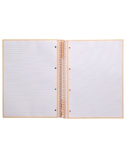 El cuaderno de más alta gama del mercado: exclusivo diseño, características inigualables, un cuaderno sin precedentes que se distingue por la suavidad y blancura de su papel, y además hace la escritura muy fluida. Tapa de cartón entrecolado de 1,5 mm de espesor, forrado a una cara con papel estucado mate extrasuave y reserva de barniz UVI. Guarda interior impresa. 100 y 120 hojas. Gran resistencia y rigidez. Papel extrablanco de 100 g/m², ultrasuave que hace la escritura mucho más fluida. La tinta no traspasa. 4 bandas de colores (formato A6) y 5 bandas de colores (formatos A5 y A4). Espiral nylonizada de colores. Coil-lock.