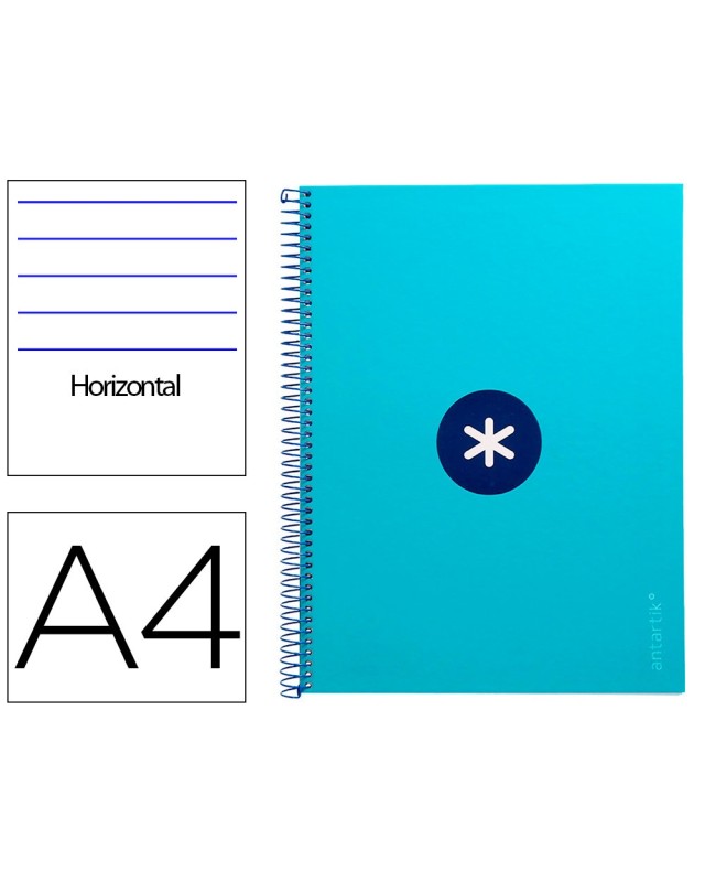Cuaderno espiral a4 micro antartik tapa forrada80h 90 gr horizontal 1 banda 4 taladros color turquesa