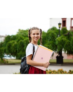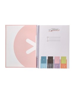EL CUADERNO DE MÁS ALTA GAMA DEL MERCADO: EXCLUSIVO DISEÑO, CARACTERÍSTICAS INIGUALABLES, UN CUADERNO SIN PRECEDENTES QUE SE DISTINGUE POR LA SUAVIDAD Y BLANCURA DE SU PAPEL. TAPA DE CARTÓN ENTRECOLADO DE 1,5 MM DE ESPESOR, FORRADO A UNA CARA CON PAPEL ESTUCADO MATE EXTRASUAVE Y RESERVA DE BARNIZ UVI. GUARDA INTERIOR IMPRESA. 80 HOJAS DE GRAN RESISTENCIA Y RIGIDEZ. PAPEL EXTRABLANCO DE 90 G/M2, ULTRASUAVE QUE HACE LA ESCRITURA MUCHO MÁS FLUIDA. LA TINTA NO TRASPASA. BANDA DE COLOR. FORMATO DIN A4. MICROPERFORADO.ESPIRAL NYLONIZADA DE COLORES. COIL-LOCK. COLOR ROSA. INTERIOR IMPRESO EN SUAVES PUNTOS GRISES EQUIDISTANTES 5MM ENTRE SI QUE PERMITEN SER UNA PERFECTA GUIA SIN DESTACAR. IDEAL PARA HACER BOCETOS, DIBUJAR, TOMAR APUNTES O HACER GRAFICOS.