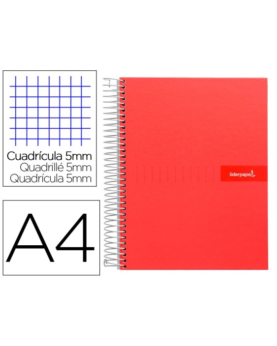 Cuaderno espiral liderpapel a4 micro crafty tapa forrada 120h 90 gr cuadro 5mm 5 bandas 4 colores color rojo