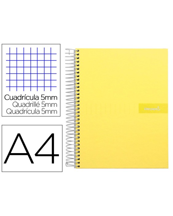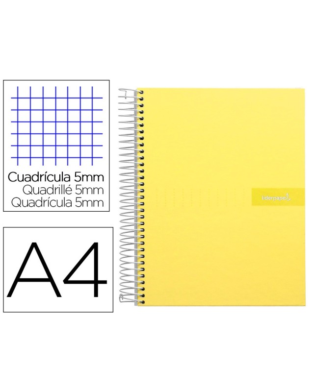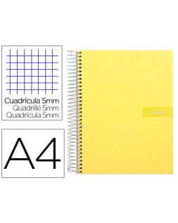Cuaderno espiral liderpapel a4 micro crafty tapa forrada 120h 90gr cuadro 5mm 5 bandas 4 taladros color amarillo