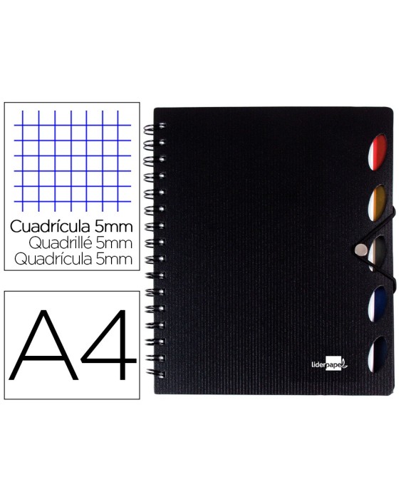 Cuaderno espiral liderpapel a4 micro executive tapa plastico 100h 80 gr cuadro 5mm 5 separadores con gomilla negro