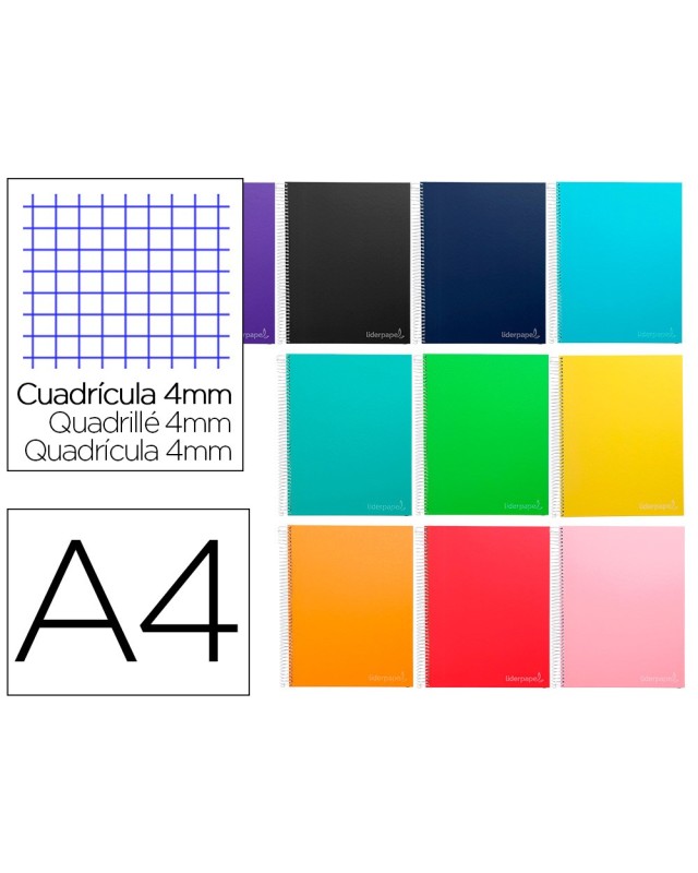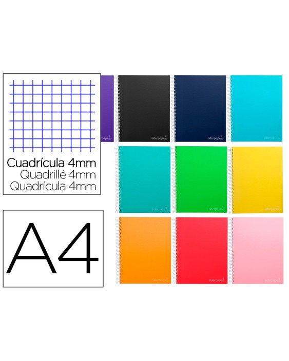 Cuaderno espiral liderpapel a4 micro jolly tapa forrada 140h 75 gr cuadro 4mm 5 bandas4 taladros colores surtidos