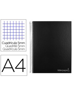 Cuaderno espiral liderpapel a4 micro jolly tapa forrada 140h 75 gr cuadro 5mm 5 bandas 4 taladros color negro