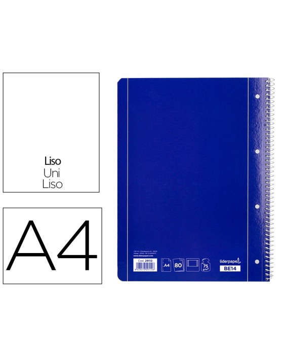 Cuaderno espiral liderpapel a4 micro serie azul tapa blanda 80h 75 gr liso con margen 4 taladros azul