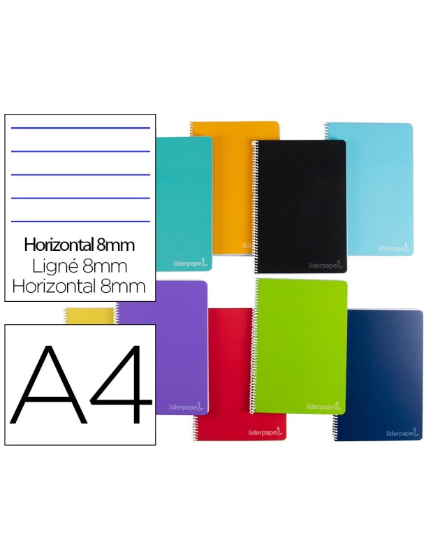 Cuaderno espiral liderpapel a4 micro witty tapa dura 140h 75gr horizontal 8mm 5 bandas 4 taladros colores surtidos