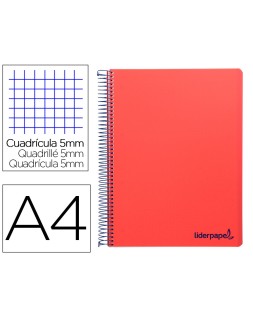 Cuaderno espiral liderpapel a4 micro wonder tapa plastico 120h 90 gr cuadro 5mm 5 bandas 4 taladros color rojo
