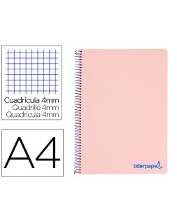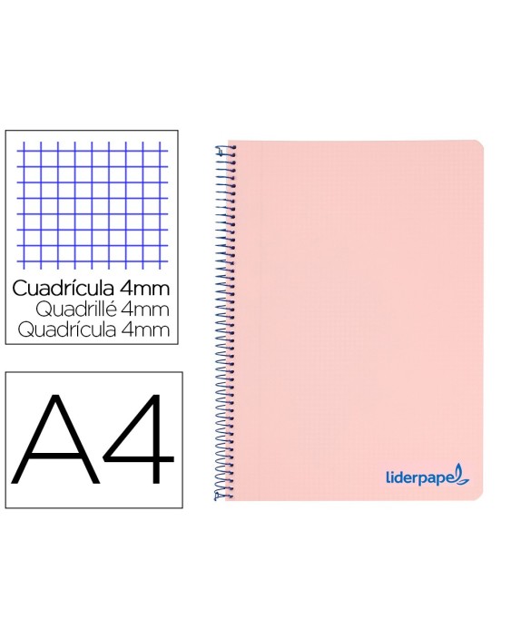 Cuaderno espiral liderpapel a4 wonder tapa plastico 80h 90gr cuadro 4mm con margen color rosa