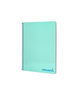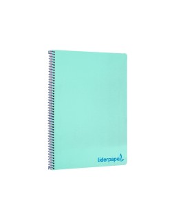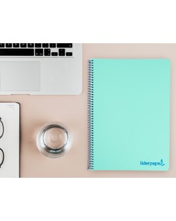 Cuaderno espiral liderpapel a4 wonder tapa plastico 80h 90gr cuadro 4mm con margen color verde pastel