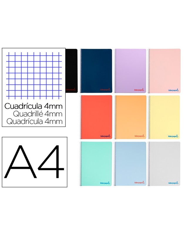 Cuaderno espiral liderpapel a4 wonder tapa plastico 80h 90gr cuadro 4mm con margen colores surtidos