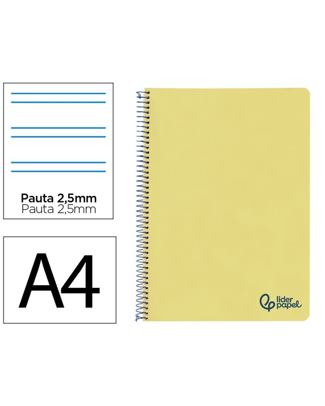 Cuaderno espiral liderpapel a4 wonder tapa plastico 80h 90gr pauta estrecha 2,5mm con margen color amarillo