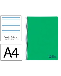 Cuaderno espiral liderpapel a4 wonder tapa plastico 80h 90gr pauta estrecha 2,5mm con margen color verde oscuro
