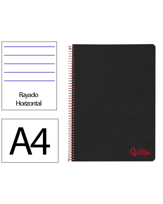 Cuaderno espiral liderpapel a4 wonder tapa plastico 80h 90gr rayado horizontal con margen color negro