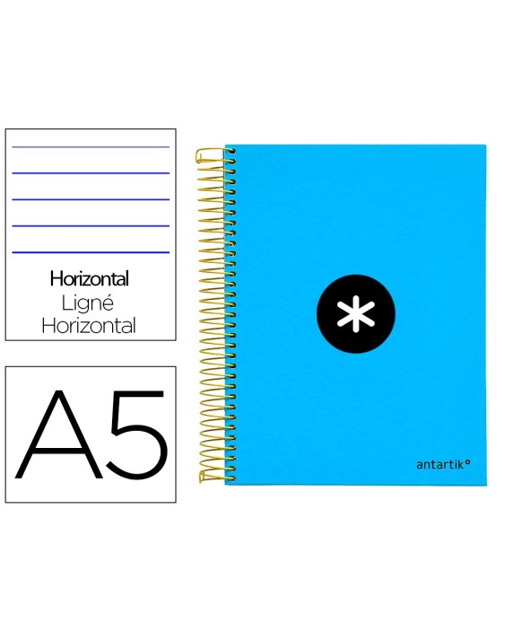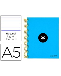 Cuaderno espiral a5 micro antartik tapa forrada 120h 100 gr horizontal 5 bandas 6 taladros color azul
