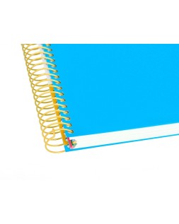 El cuaderno de más alta gama del mercado: exclusivo diseño, características inigualables, un cuaderno sin precedentes que se distingue por la suavidad y blancura de su papel, y además hace la escritura muy fluida. Tapa de cartón entrecolado de 1,5 mm de espesor, forrado a una cara con papel estucado mate extrasuave y reserva de barniz UVI. Guarda interior impresa. 100 y 120 hojas. Gran resistencia y rigidez. Papel extrablanco de 100 g/m², ultrasuave que hace la escritura mucho más fluida. La tinta no traspasa. 4 bandas de colores (formato A6) y 5 bandas de colores (formatos A5 y A4). Espiral nylonizada de colores. Coil-lock.