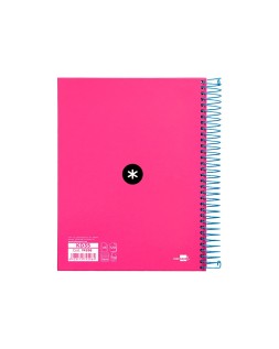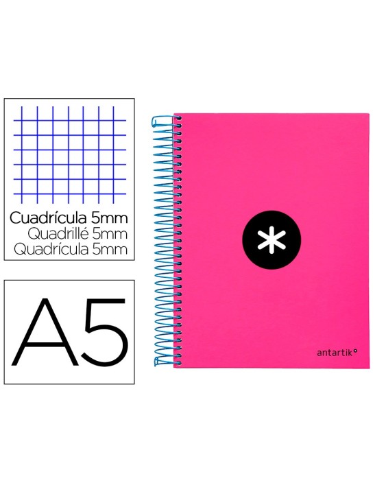 Cuaderno espiral a5 micro antartik tapa forrada 120h 90 gr cuadro 5mm 5 banda s 6 taladros color rosa
