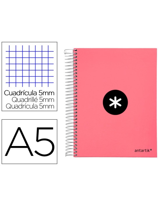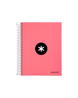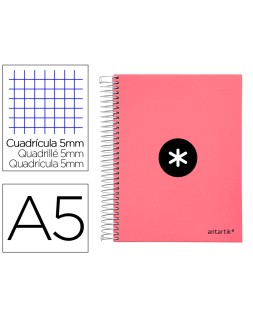 Cuaderno espiral a5 micro antartik tapa forrada120h 90 gr cuadro 5 mm 5 band 6 taladros color coral