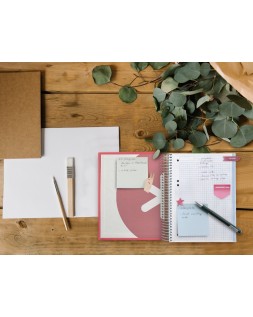 El cuaderno de más alta gama del mercado: exclusivo diseño, características inigualables, un cuaderno sin precedentes que se distingue por la suavidad y blancura de su papel, y además hace la escritura muy fluida. Tapa de cartón entrecolado de 1,5 mm de espesor, forrado a una cara con papel estucado mate extrasuave y reserva de barniz UVI. Guarda interior impresa. 100 y 120 hojas. Gran resistencia y rigidez. Papel extrablanco de 90 g/m², ultrasuave que hace la escritura mucho más fluida. La tinta no traspasa. 4 bandas de colores (formato A6) y 5 bandas de colores (formatos A5 y A4). Espiral nylonizada de colores. Coil-lock.