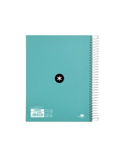 Cuaderno espiral a5 micro antartik tapa forrada120h 90 gr cuadro 5 mm 5 banda6 taladros color menta