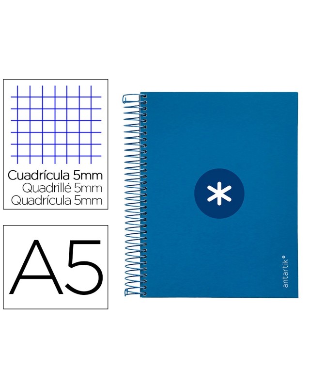 Cuaderno espiral a5 micro antartik tapa forrada120h 90 gr cuadro 5mm 5 bandas6 taladros color azul oscuro