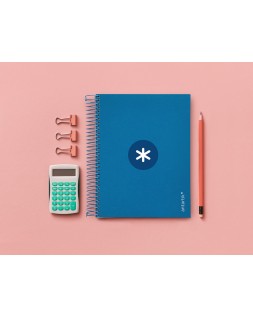 El cuaderno de más alta gama del mercado: exclusivo diseño, características inigualables, un cuaderno sin precedentes que se distingue por la suavidad y blancura de su papel, y además hace la escritura muy fluida. Tapa de cartón entrecolado de 1,5 mm de espesor, forrado a una cara con papel estucado mate extrasuave y reserva de barniz UVI. Guarda interior impresa. 100 y 120 hojas. Gran resistencia y rigidez. Papel extrablanco de 90 g/m², ultrasuave que hace la escritura mucho más fluida. La tinta no traspasa. 4 bandas de colores (formato A6) y 5 bandas de colores (formatos A5 y A4). Espiral nylonizada de colores. Coil-lock.