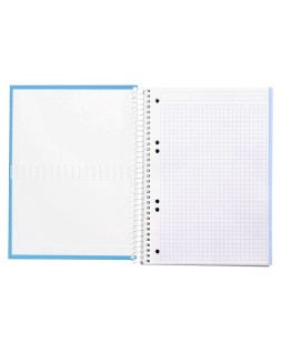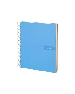 Cuaderno espiral liderpapel a5 micro crafty tapa forrada 120h 90 gr cuadro 5mm 5 bandas6 taladros color celeste