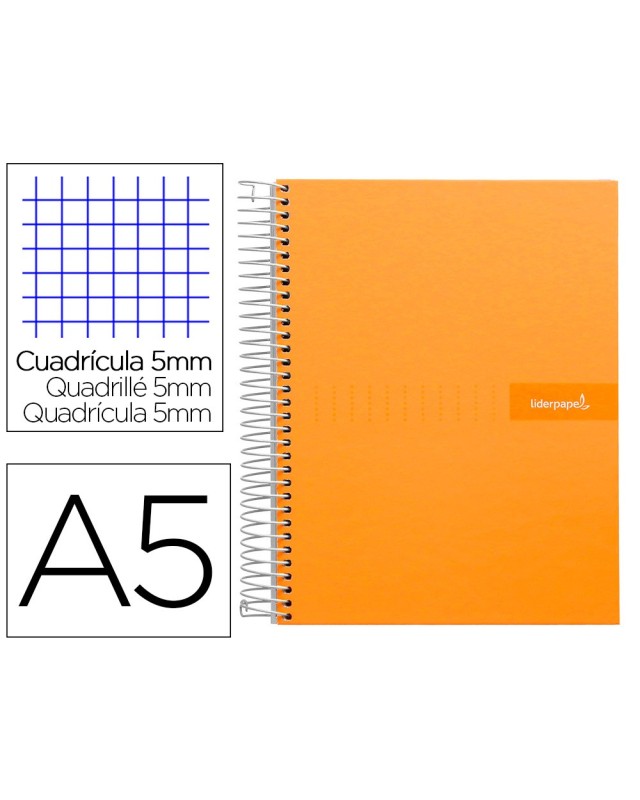 Cuaderno espiral liderpapel a5 micro crafty tapa forrada 120h 90 gr cuadro 5mm 5 bandas6 taladros color naranja
